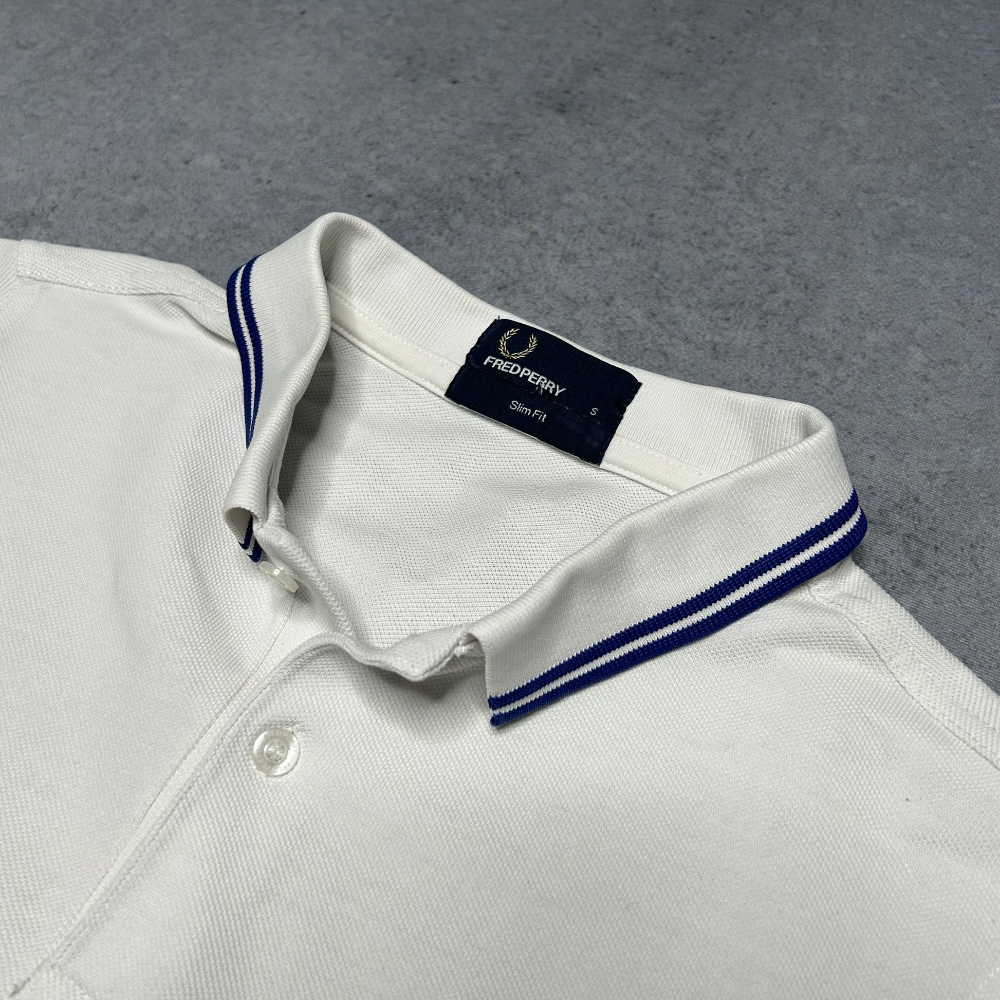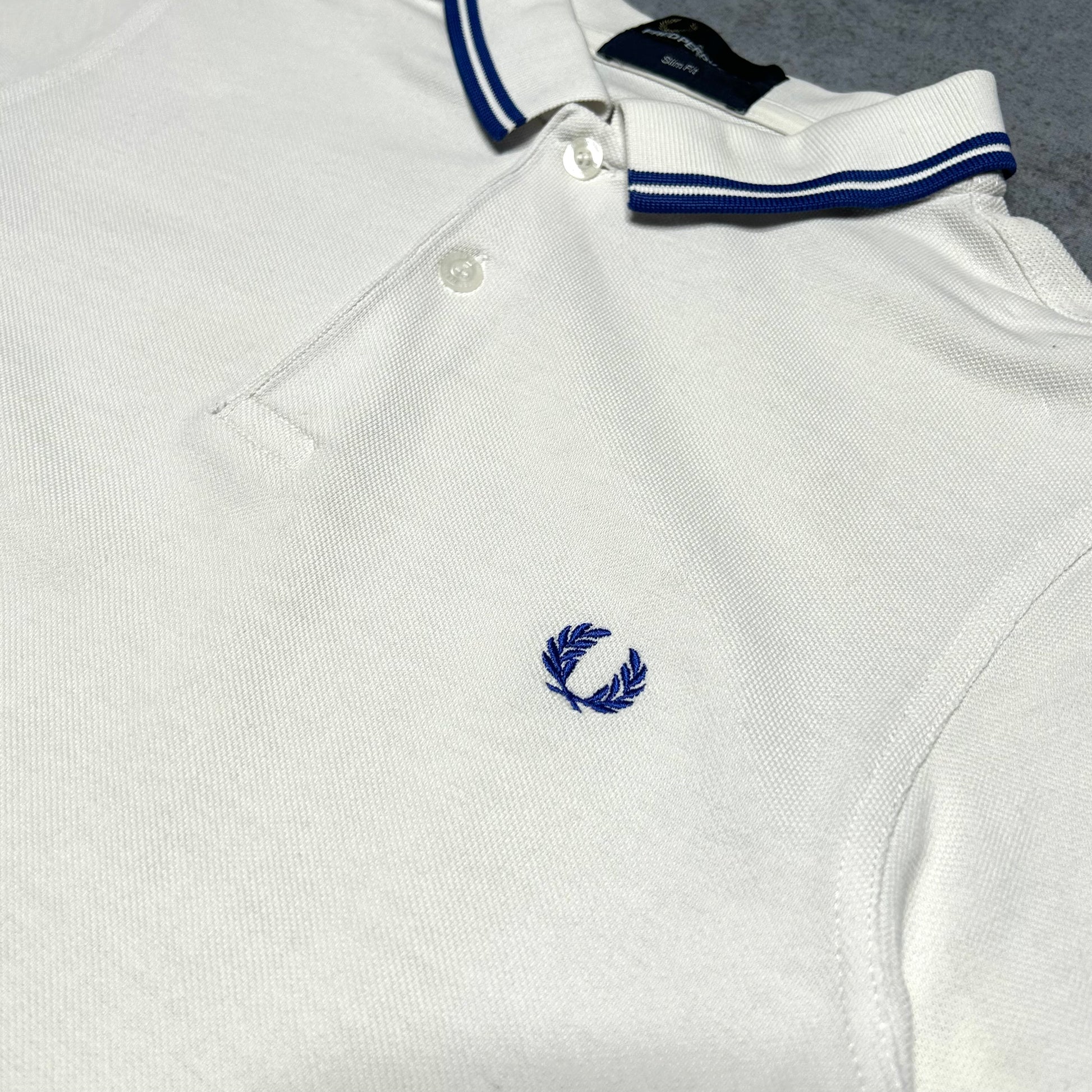 Fred Perry Twin Tipped Pique Polo Shirt White Blue (S)