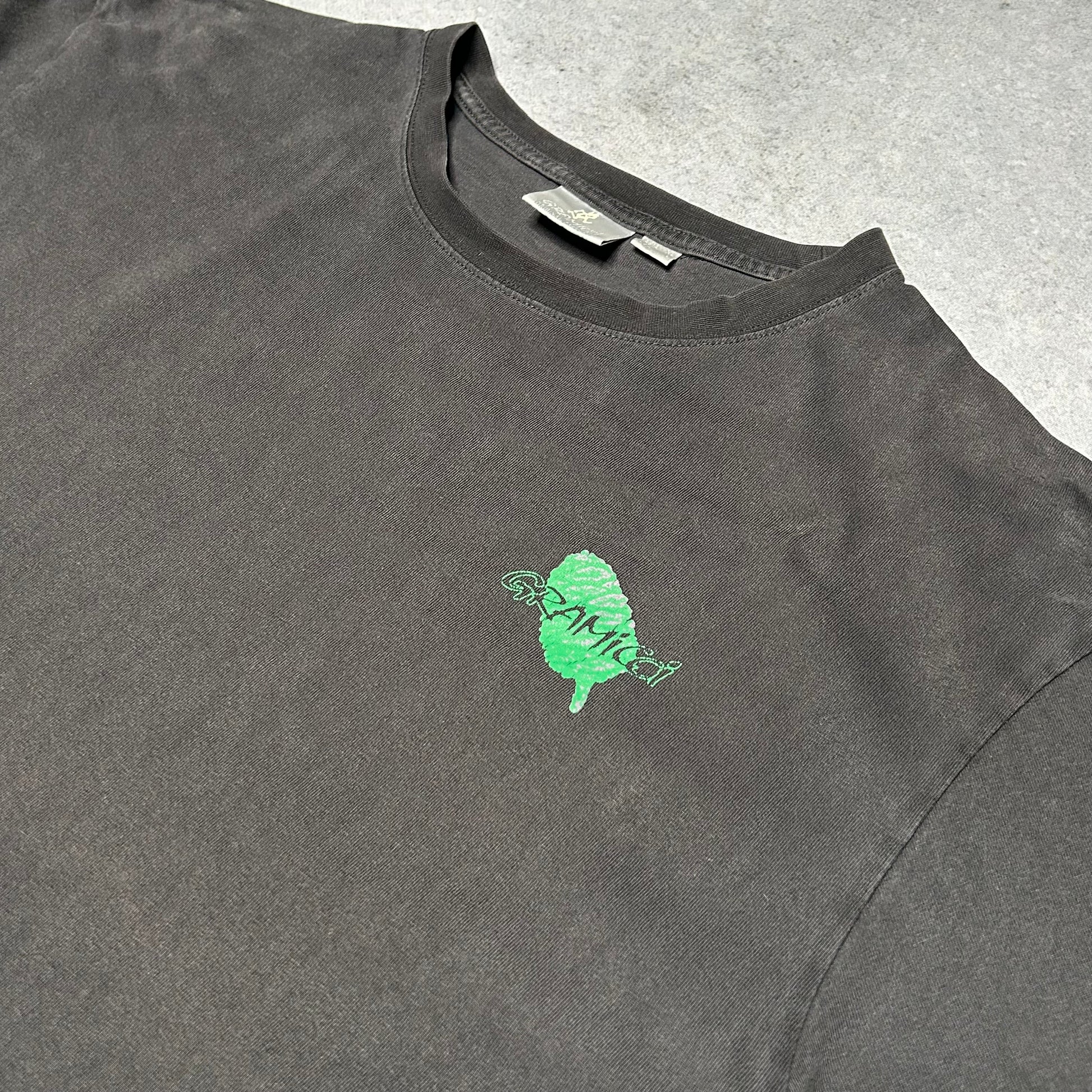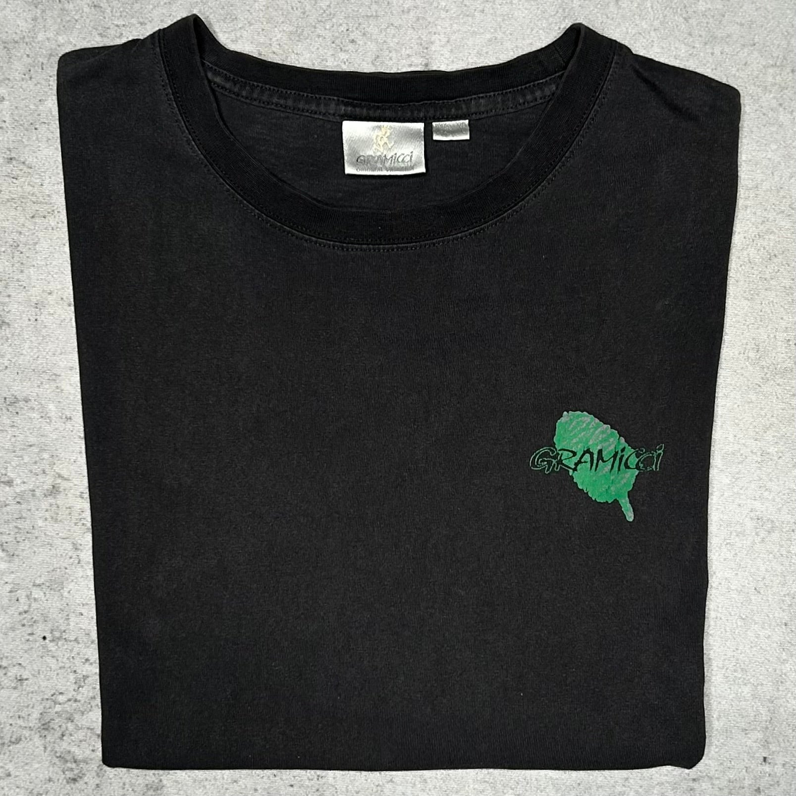 This Gramicci tee celebrates the natural beauty of the brand’s California roots. It features a striking green graphic on the back showcasing the "Great Trees of California" alongside a small chest logo. Made from high-quality, durable cotton with a slightly faded black wash, this shirt offers a relaxed, authentic outdoor look. A perfect piece for collectors of heritage climbing gear and Gorpcore enthusiasts.