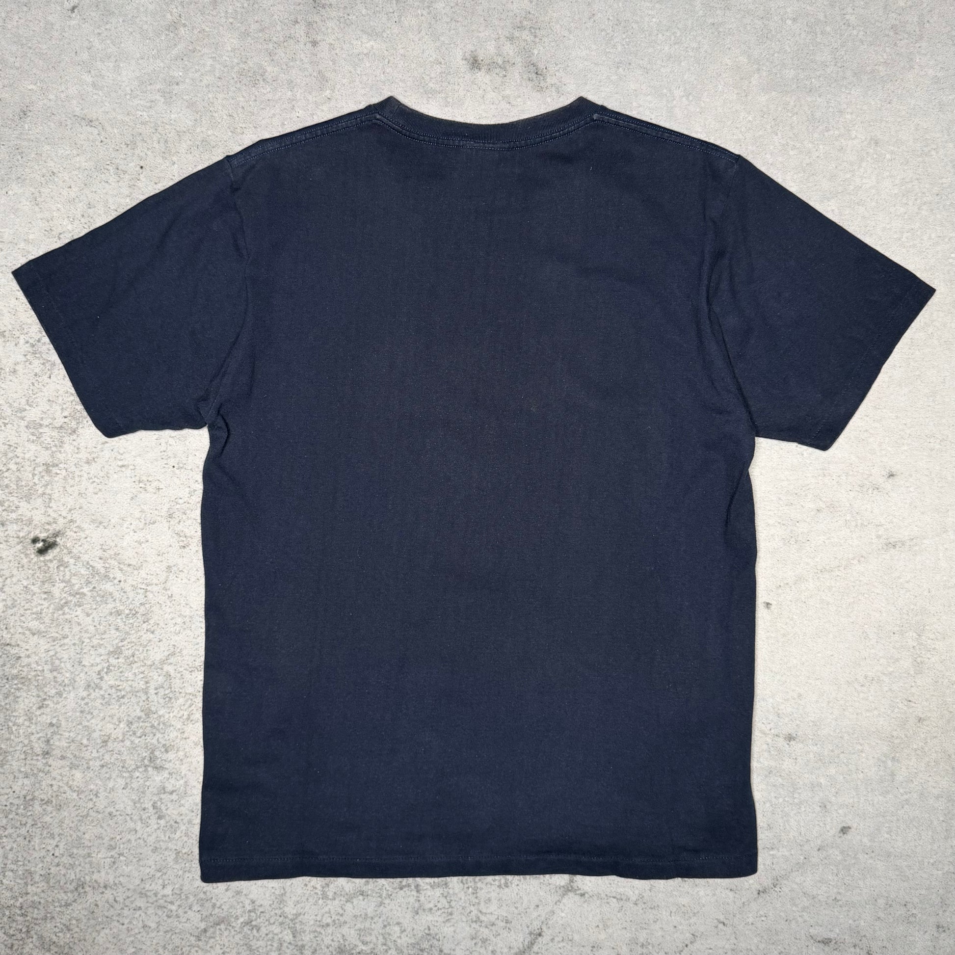 This BAPE A Bathing Ape T-shirt features the brand's most enduring design, the College Logo, in a classic navy blue and vibrant yellow colorway. Evoking a traditional varsity sportswear aesthetic, the front print showcases the iconic Ape Head surrounded by bold collegiate typography. Crafted from premium soft cotton, this piece represents the core identity of Japanese streetwear culture. Finished with the authentic woven sleeve tag, it offers a standard, comfortable fit suitable for daily wear.