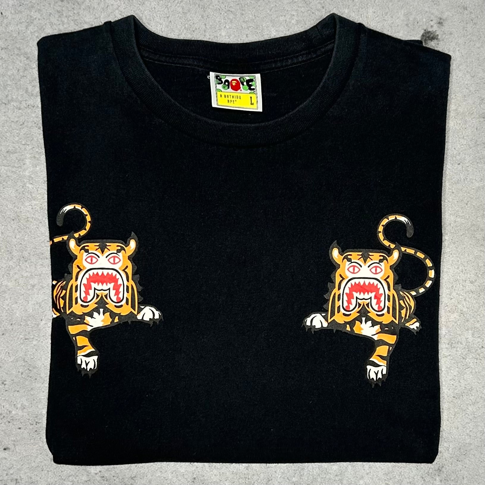 BAPE Double Tiger T Shirt black w/ Arabic Font Backprint (L)